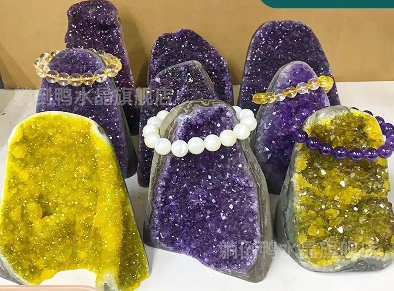 Natural Amethyst & Citrine Geode Clusters β Home Decor & Energy Healing Stones